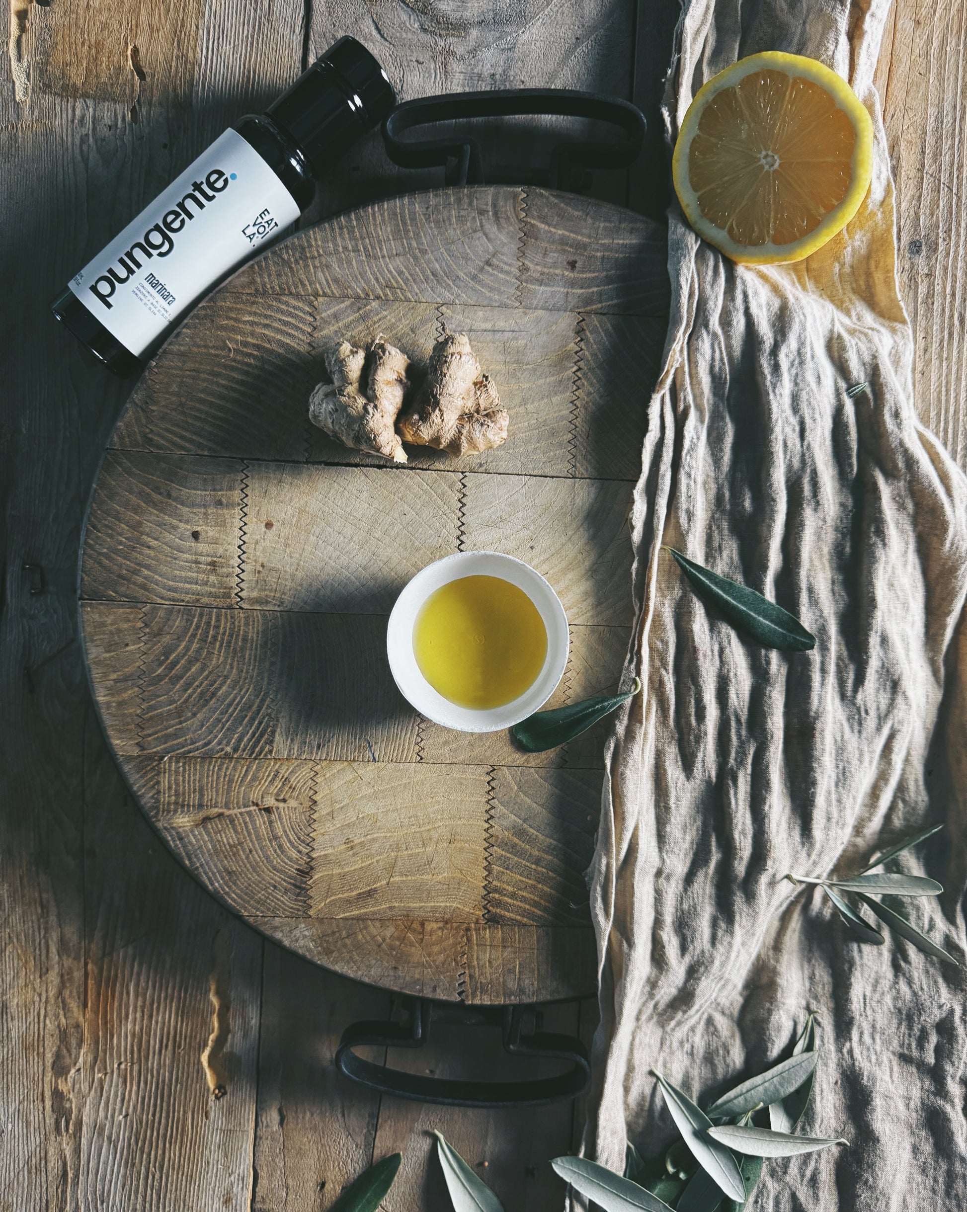 Ingredienti: olio extravergine di oliva, aroma naturale di limone 0,5%, aroma naturale di zenzero 0,3%.